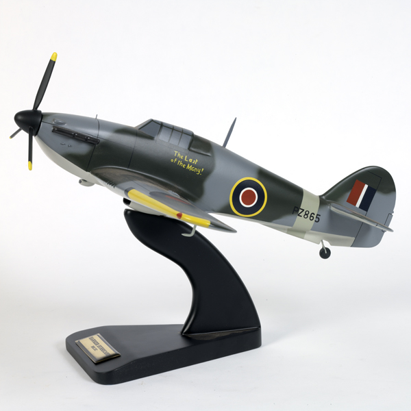This Hawker Hurricane MK1 (PZ865 and other markings identified as 76 G-AMAU) took part in the films âAngels One Fiveâ and âBattle of Britainâ. It was flown during the war by Group Captain Peter Townsend with No. 56 Squadron, RAF.